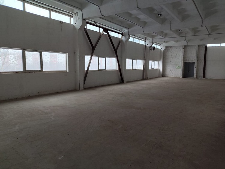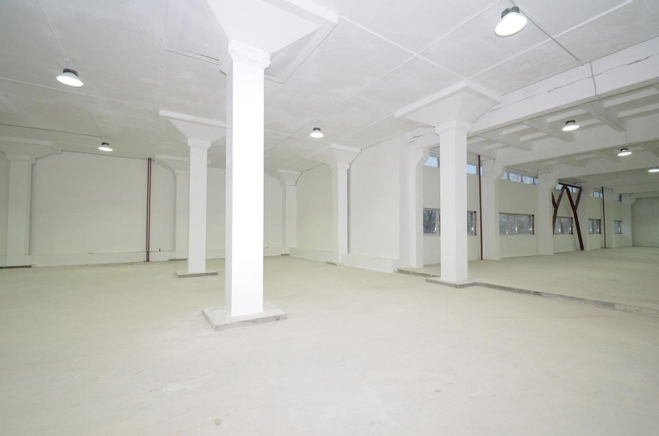 Помещение с окнами, высота потолка 5.5 метров. Нагрузка на пол 2.0 тонны.